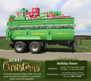 We know the holiday period can still be a time of activity out on the farm. That’s why our parts and support teams will be available throughout the Christmas period to help keep you operating. Whether you need technical support or parts urgently, give us a call on 0800 745 583 – we’re here to help!