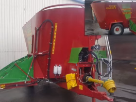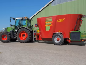 The Verti Mix Double K design, is the first fodder mixing wagon, which, due to its special container design, combines the advantages of the classical vertical mixing wagons with those of the horizontal mixing wagons (slim design, large tyres beside the mixing container) in one machine.