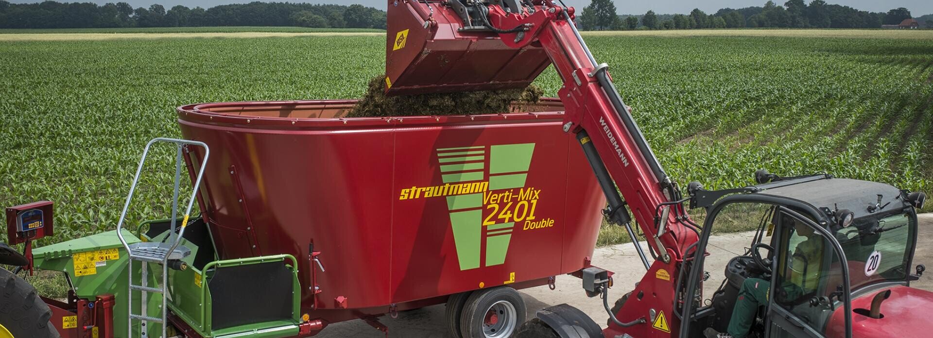 The fodder mixing wagons of the Verti Mix Double series particularly excel by their high mixing capacity, while maintaining compact dimensions. Based upon the vertical mixers known for their gentle and quick mixing, the Verti Mix Double is equipped with 2 vertical Vario mixing augers. Apart from the quick preparation of larger fodder mixtures, the Verti Mix Double models can particularly demonstrate their strengths in the powerful undoing of round and cuboid bales.